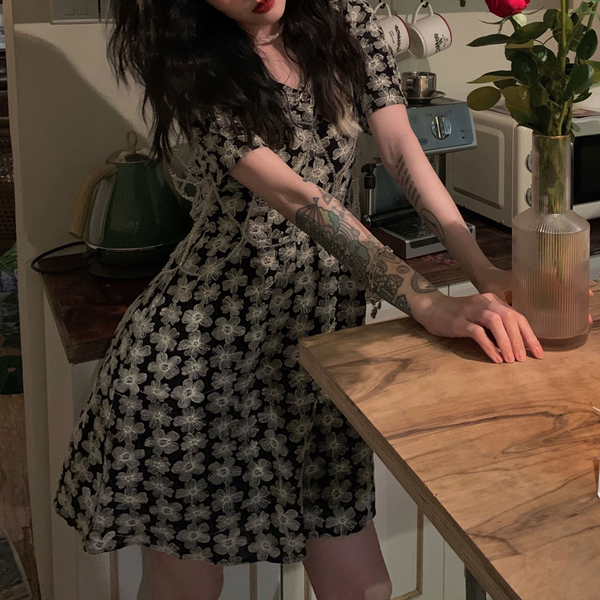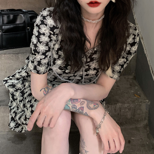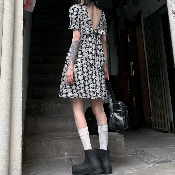 这款连衣裙是复古的风格,蕾丝的样式,时尚大气,后背的镂空设计,很有女人味,搭配高跟鞋或者裙子都很好看。