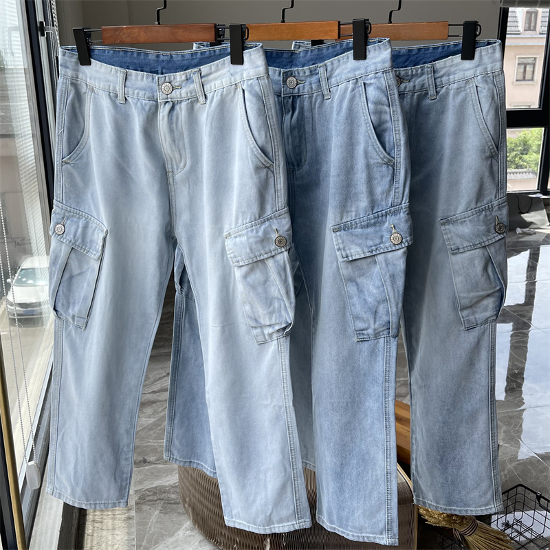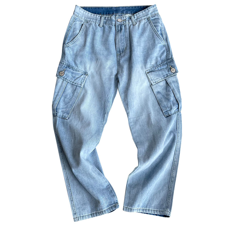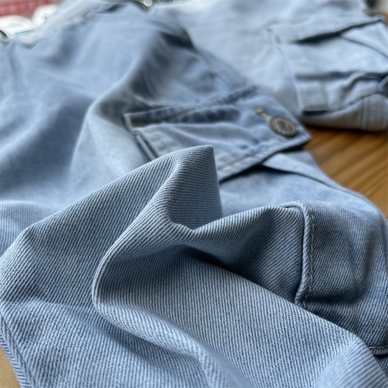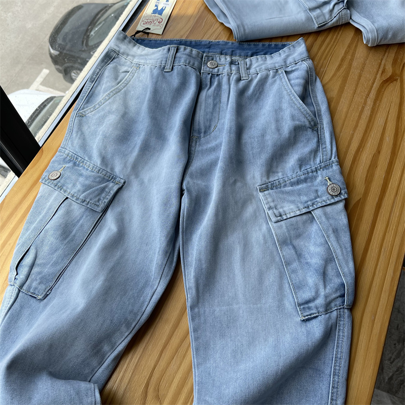 牛仔裤采用了水洗工艺,手感柔软,穿着舒适。