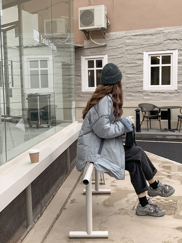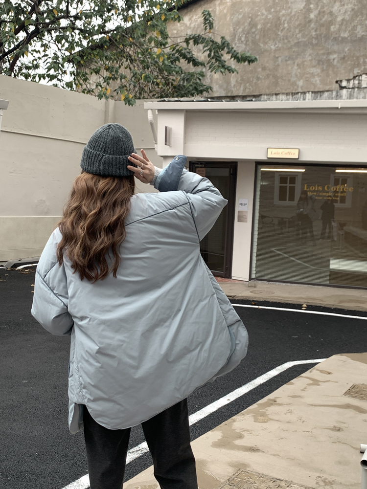 羽绒服宽松的版型设计为整体造型加分很多,上身之后不会显得臃肿或是无趣。小巧精美的翻驳领设计衬托出女性优雅的气质,同时也打造出独特的颈部线条。撞色的元素点缀为羽绒服的时尚感加上了色调的对比,更显出女性的独有魅力。