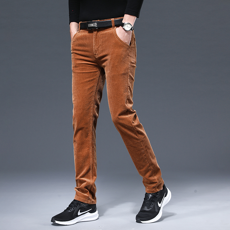 这款纯色休闲裤,采用了经典的灯芯绒面料,手感柔软,穿着舒适,修身的版型,上身效果很好,很显瘦。