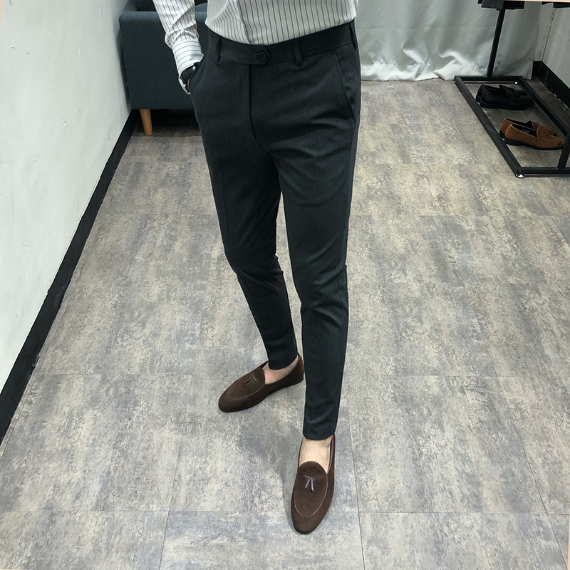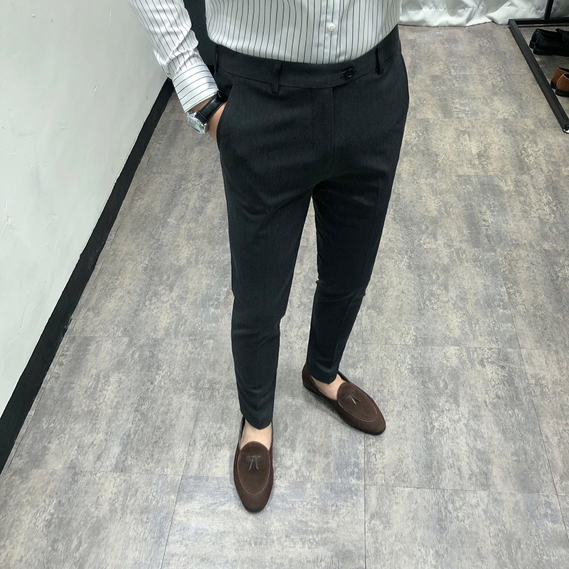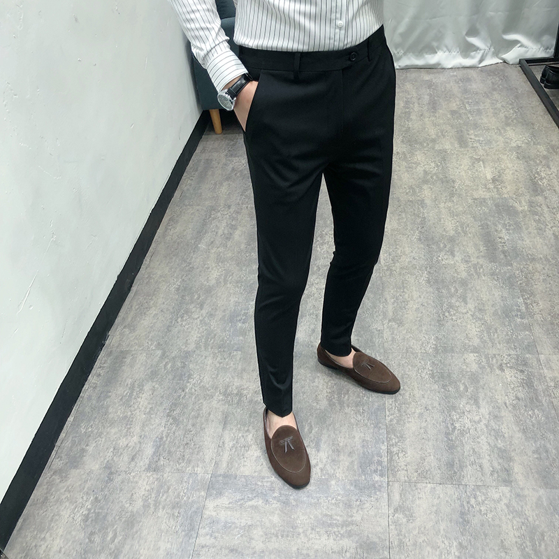 西裤版型,修饰腿部线条,西装翻领,修饰颈部线条。