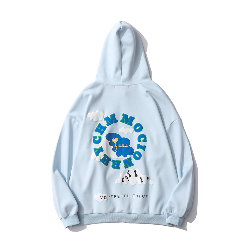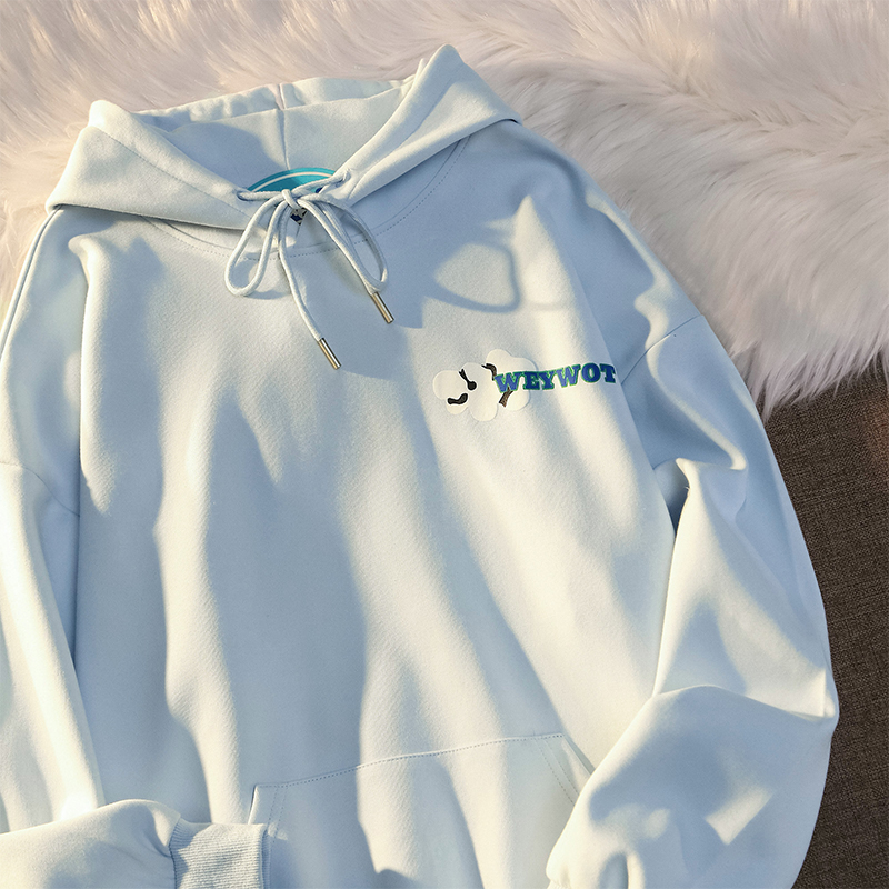 宽松版型,穿着舒适自在,多种颜色,满足不同需求,宽松卫衣,让你轻松驾驭,蓝色的色调,时尚又百搭,经典连帽设计,防风保暖。