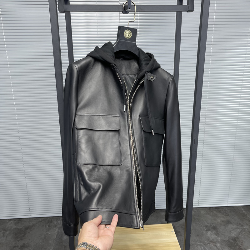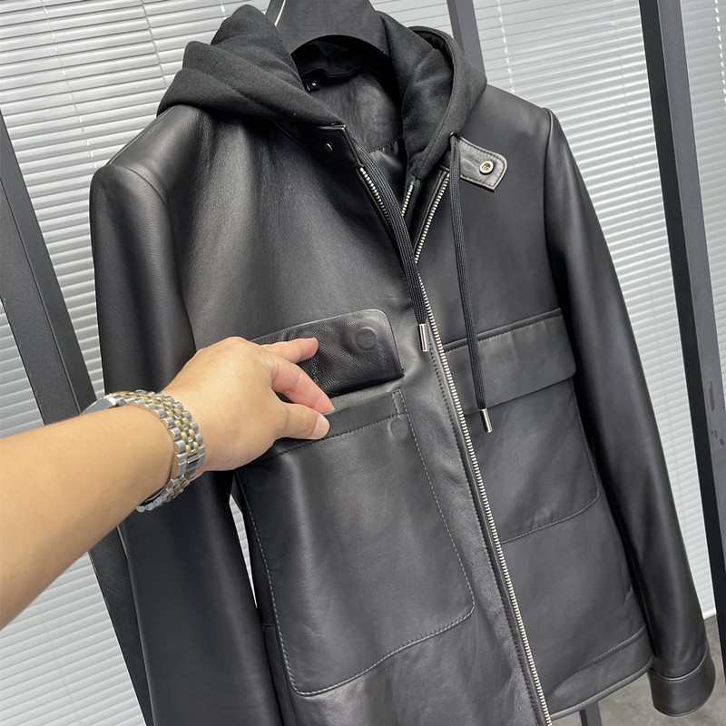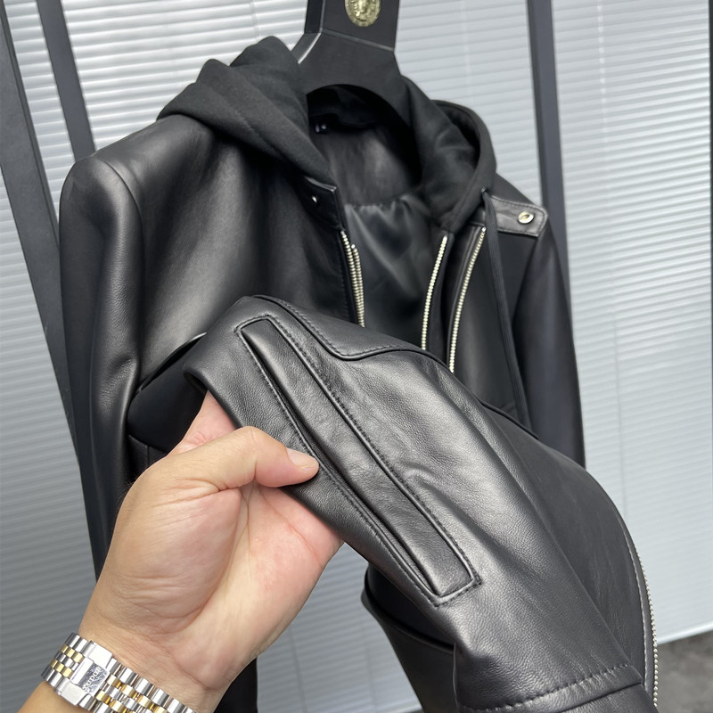 短款外套,拉长身材比例。真皮材质,穿着舒适透气。黑色的色调,经典又百搭。