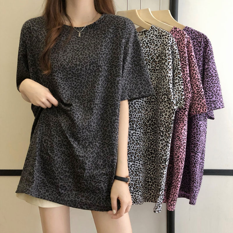 t恤是简约的风格,豹纹的样式,时尚大气,宽松的版型,穿着舒适,很有个性,搭配短裤或者短裙都很好看。