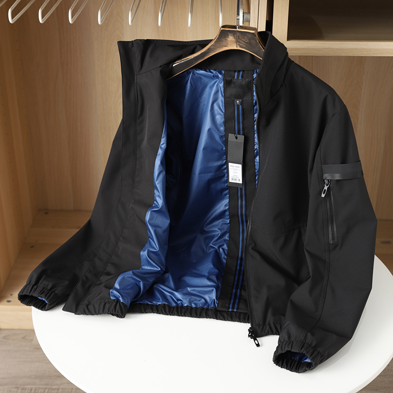 肩处撞色条纹的点缀,打破原本的单调,为整体带来更多的吸睛力,袖口处收紧的造型,紧贴手腕肌肤,能够起到更好的防风作用。