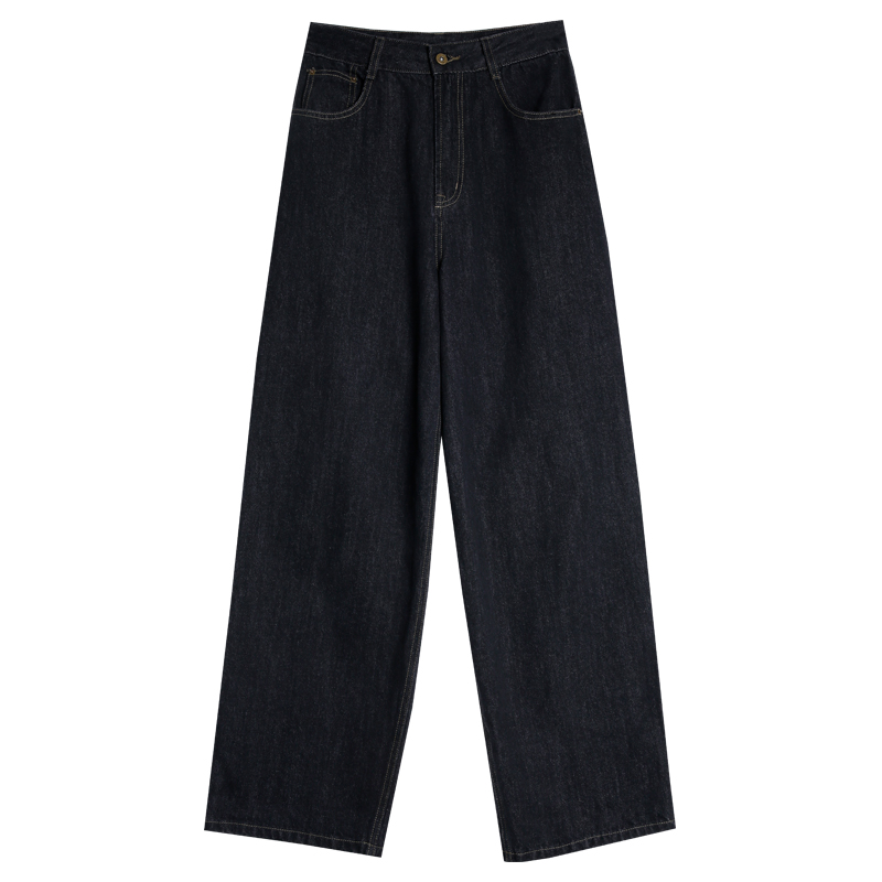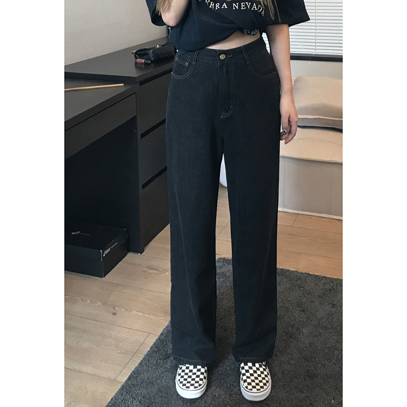 高腰设计,拉长身材比例。高腰牛仔裤,显瘦显腿长。直筒裤型,修饰腿部线条。