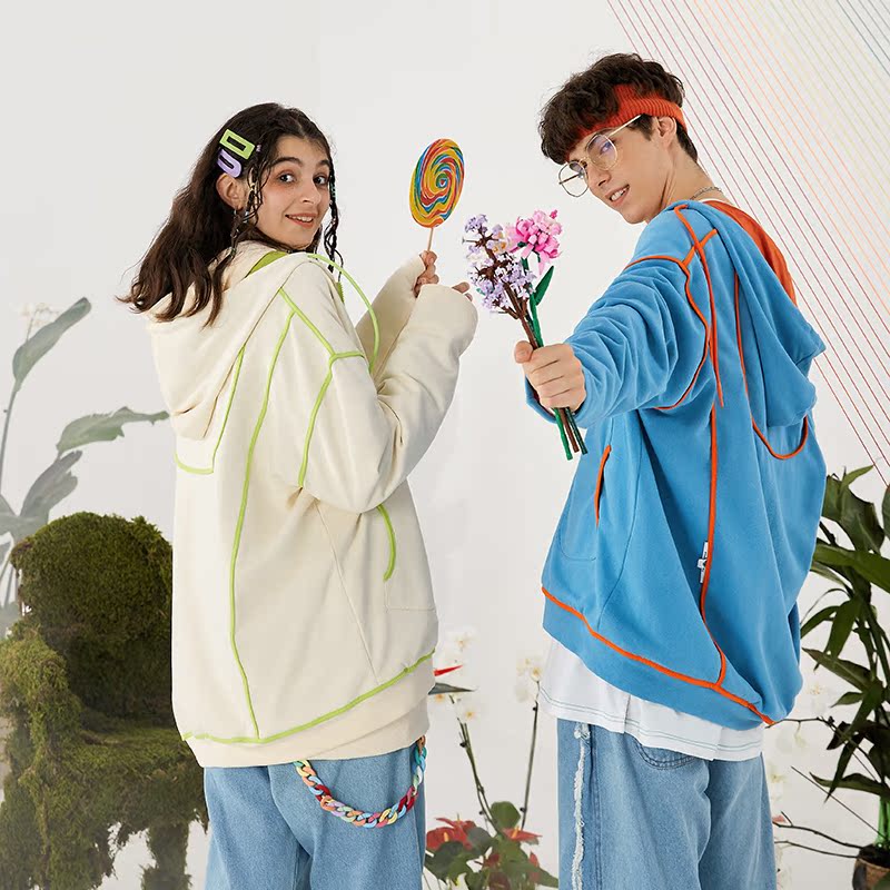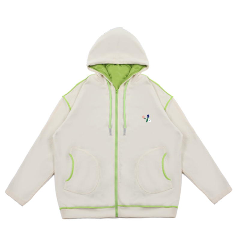 采用连帽设计,防风保暖,胸前的字母印花,增添了几分时尚感,宽松的版型,穿着舒适自在,休闲百搭。