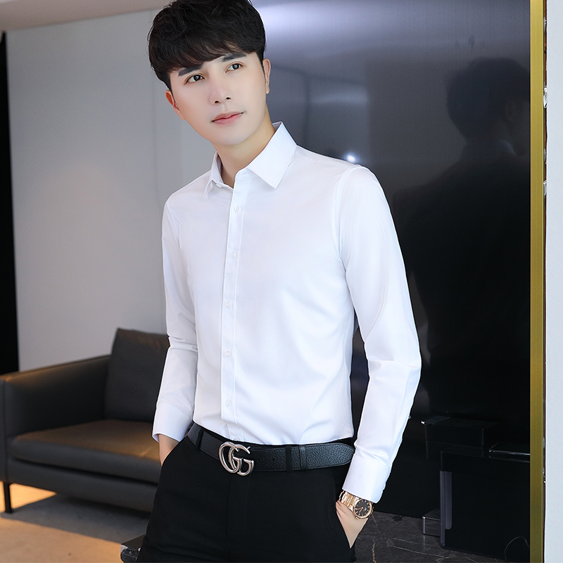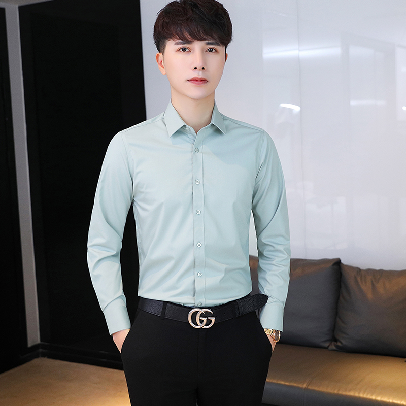 这款衬衫采用了冰丝面料,手感柔软,穿着舒适,修身的版型,上身效果很好,很显瘦,搭配牛仔裤或者休闲裤都很好看。