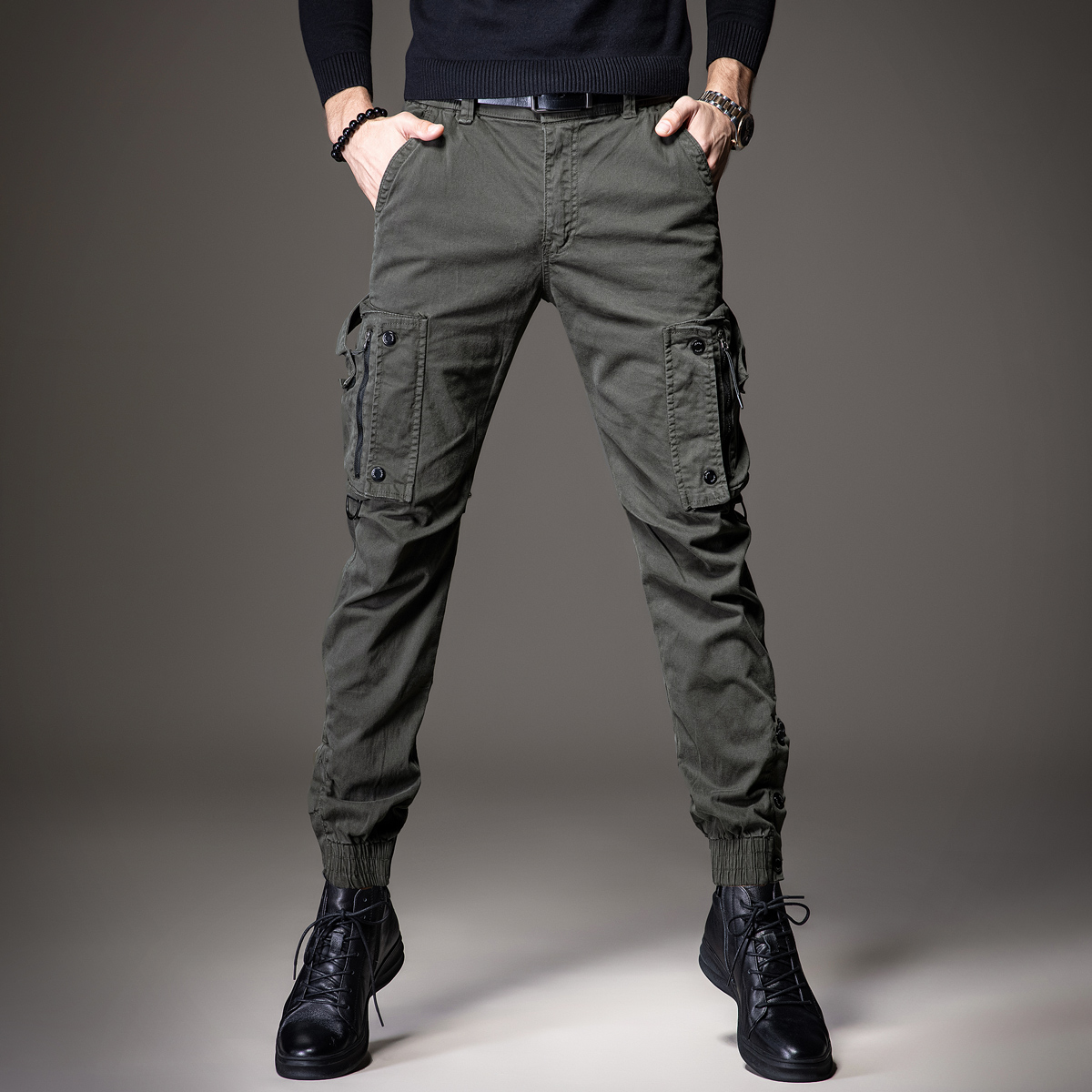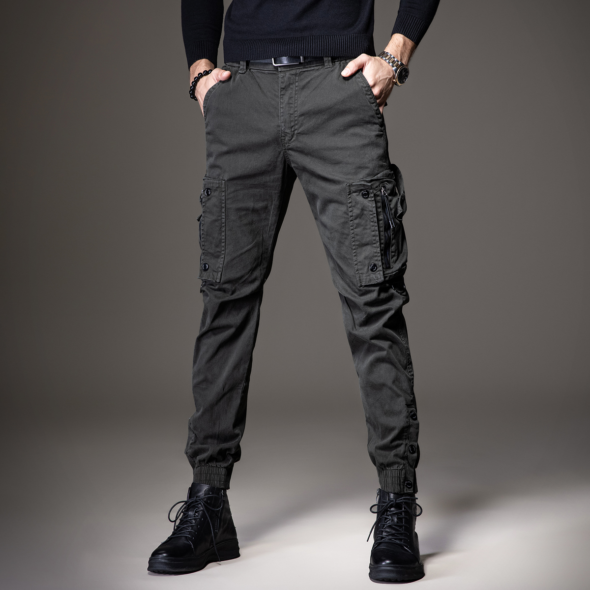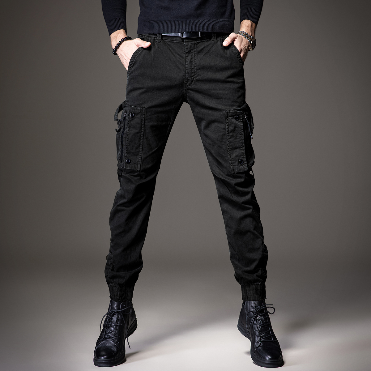 工装裤的版型,上身效果很好,很显瘦,搭配一件T恤,就能轻松穿出时尚感。
