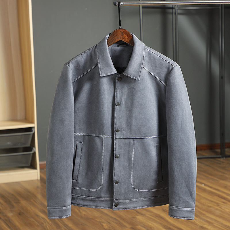 麂皮绒面料,舒适又保暖,翻领设计,修饰颈部线条,经典夹克版型,帅气有型。