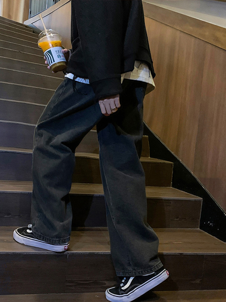 这款阔腿裤,裤身采用了做旧工艺制程,在色调上呈现出渐变磨白的效果,彰显出复古的气息,上身效果时尚又帅气。