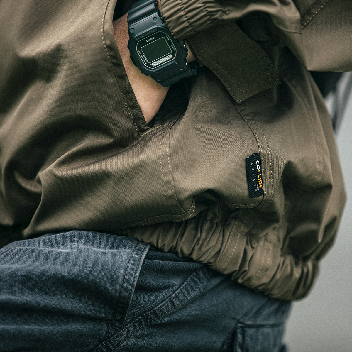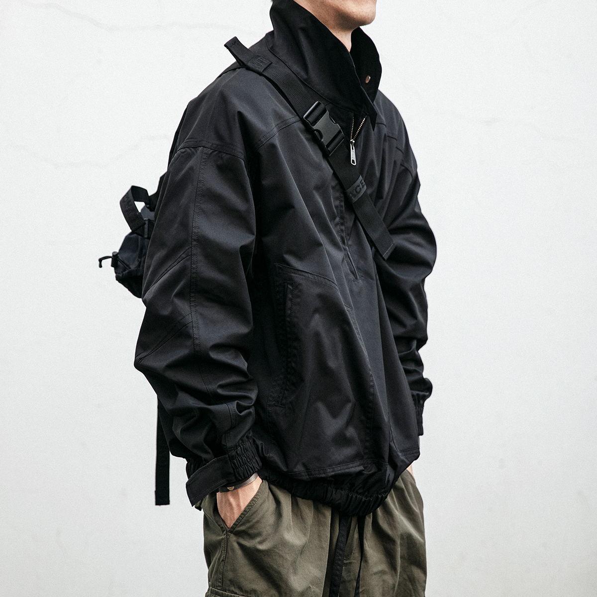 肩处撞色条纹的点缀,打破原本的单调,为整体带来更多的吸睛力,袖口处收紧的造型,紧贴手腕肌肤,能够起到更好的防风作用。