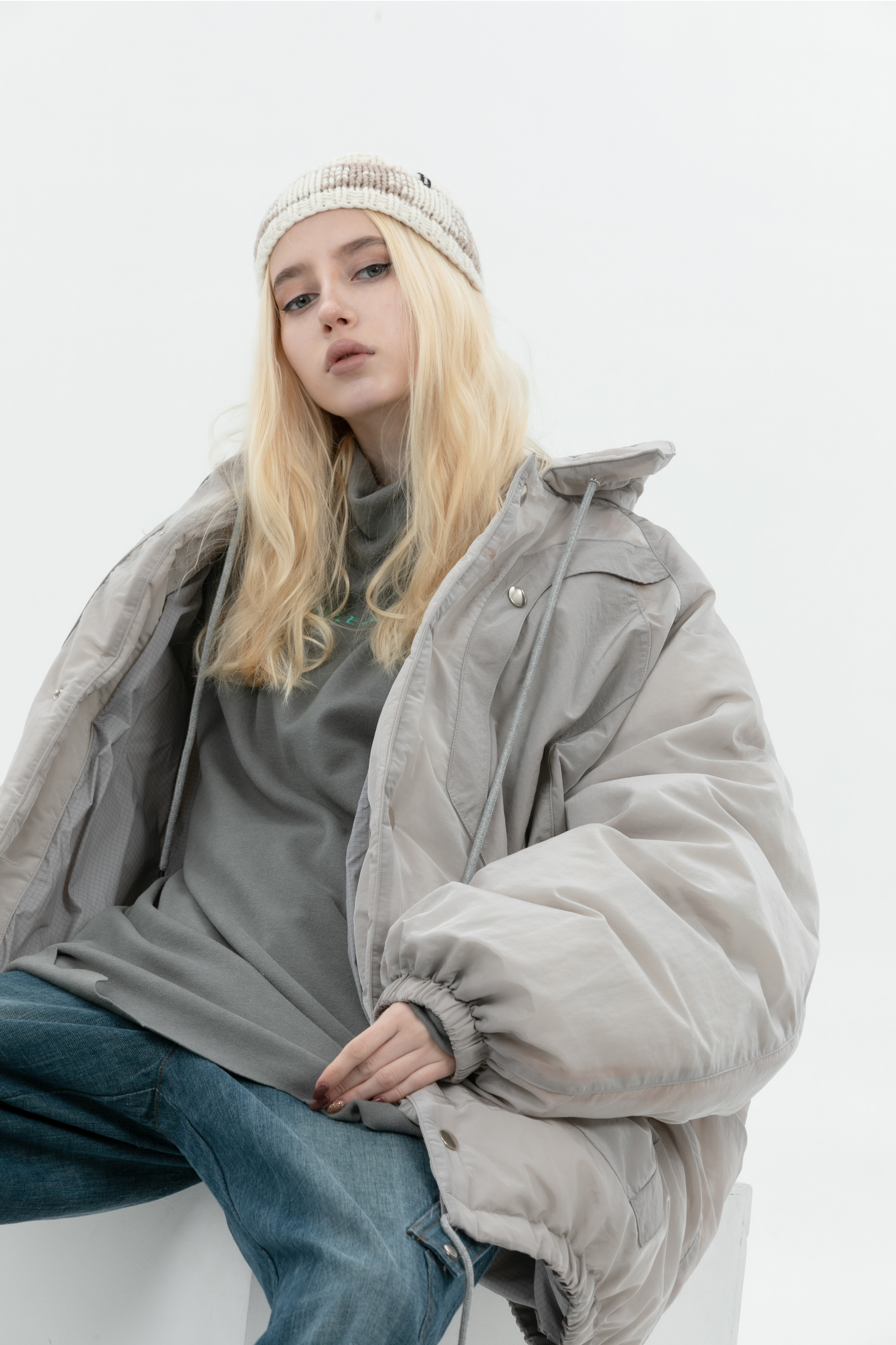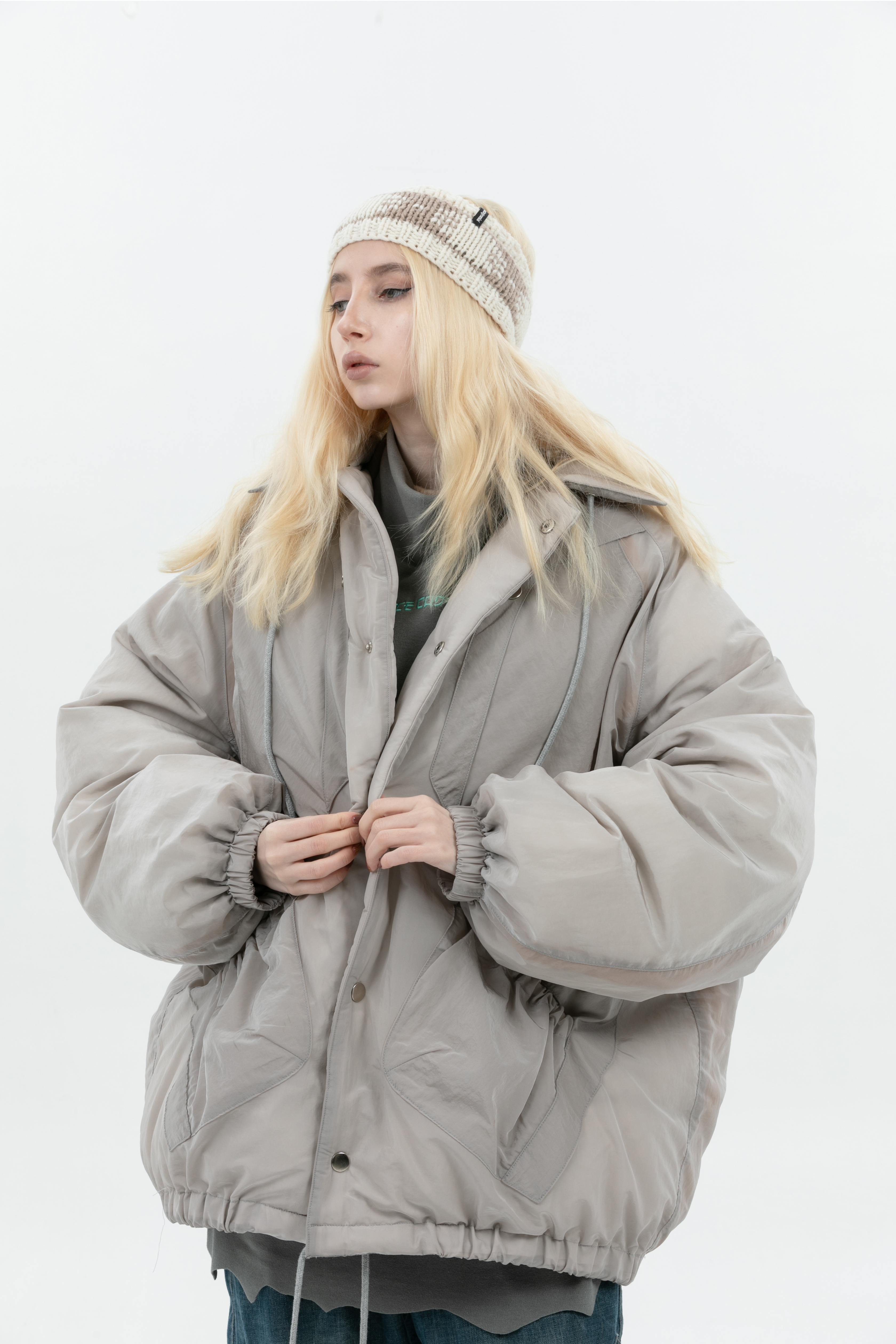 面包服设计,时尚感十足,宽松版型,穿着舒适自在,短款外套,拉长身材比例。