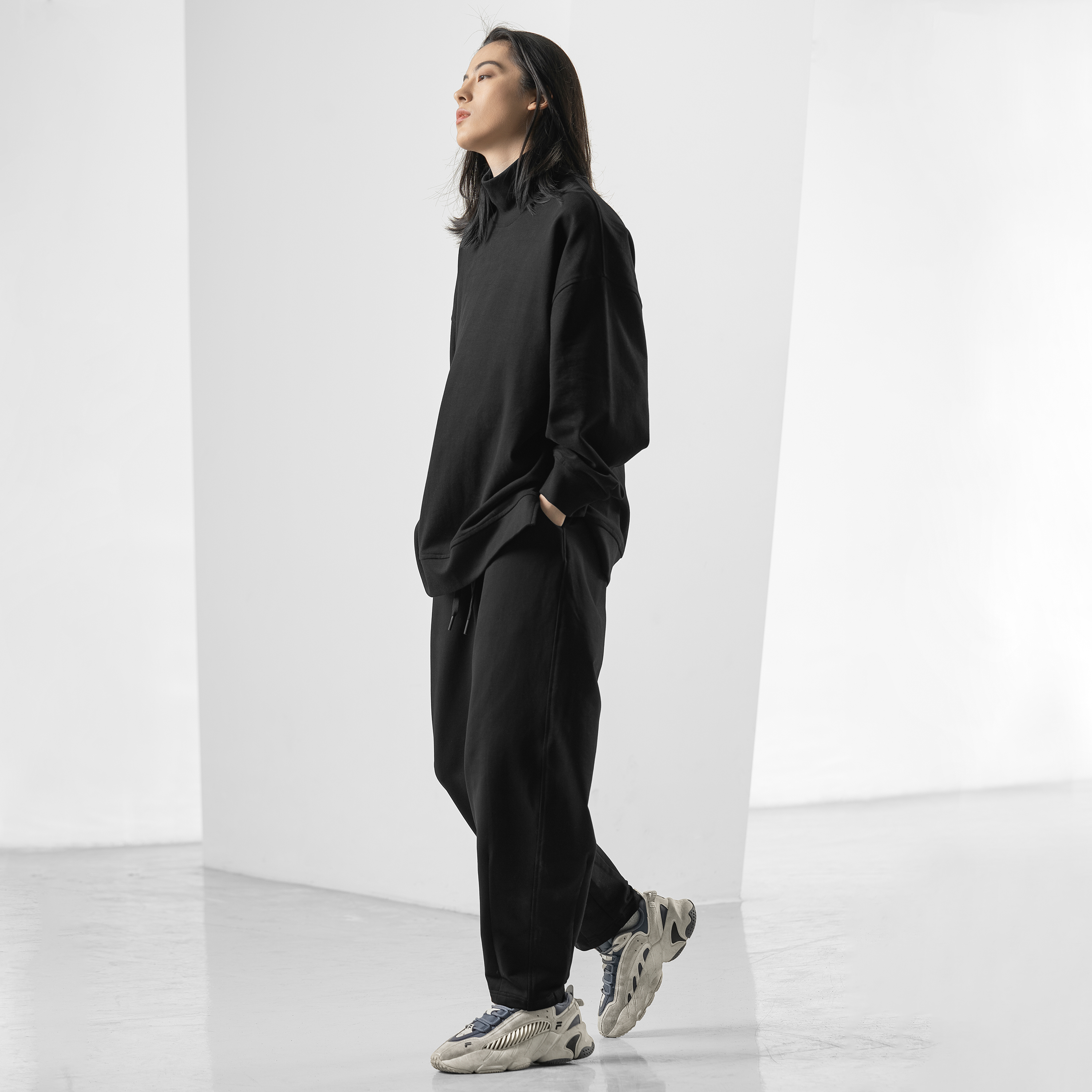 简约的高腰设计,搭配上修身的版型,上身显瘦又显高。