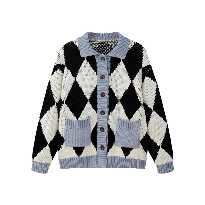 格纹元素,打造复古风格,短款外套,拉长身材比例,针织材质,穿着舒适透气。