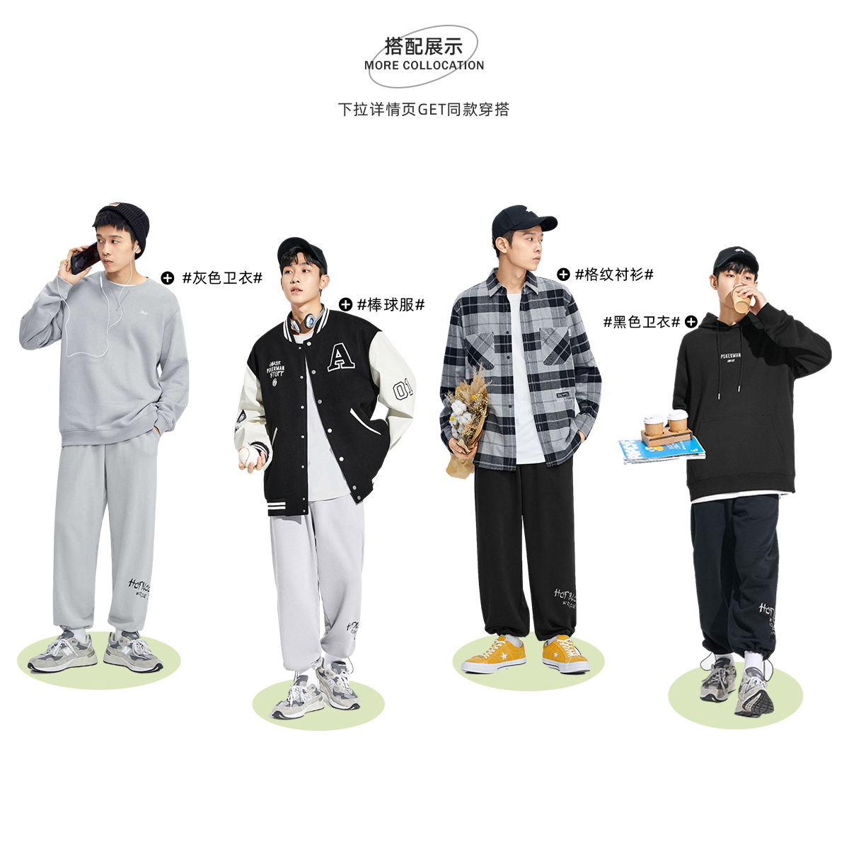 休闲裤款式,时尚又百搭,宽松版型,穿着舒适自在,宽松卫裤,休闲时尚百搭,抽绳设计,方便日常穿脱。