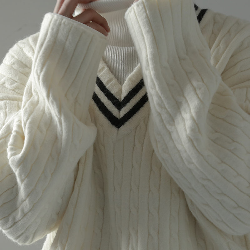 简约纯色针织衫,v领设计,露出锁骨,性感迷人,宽松的版型,不挑身材,穿着舒适自在。