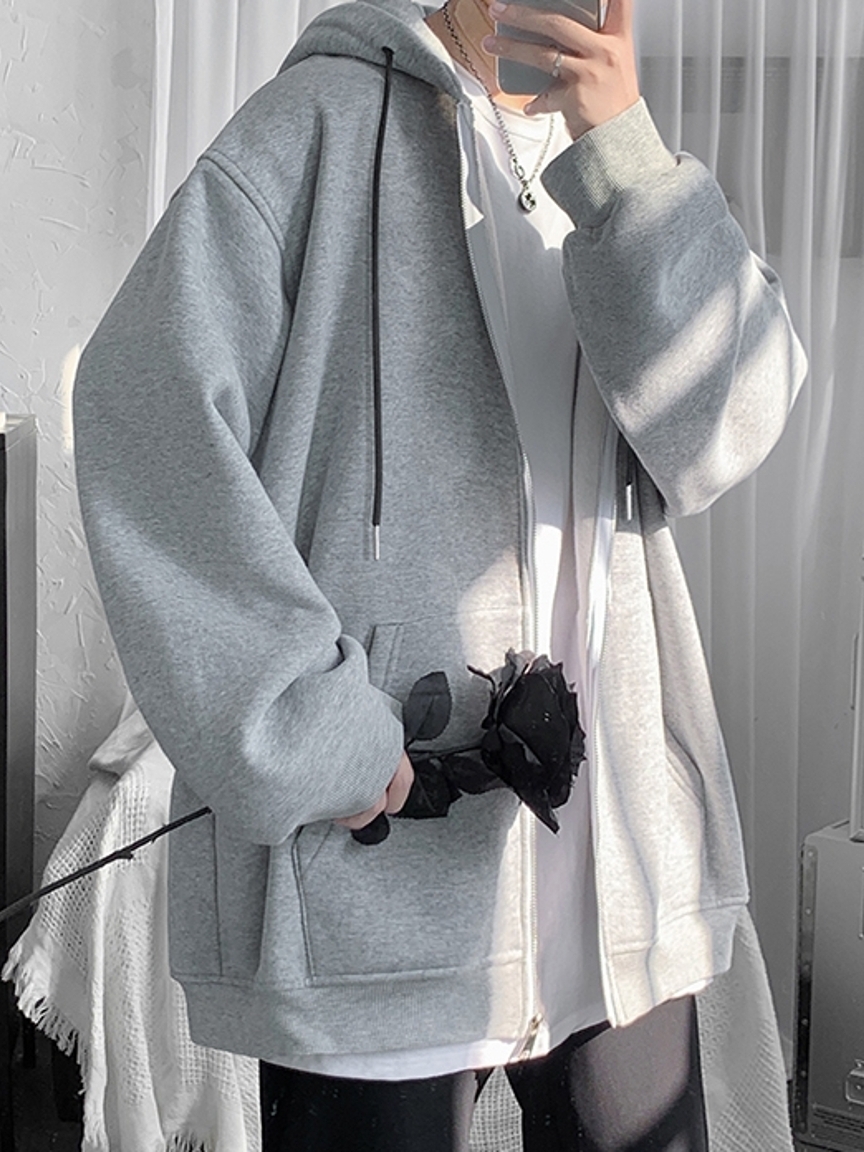 这款灰色拉链开衫外套的质感是超好的,衣身选用了优质的聚酯纤维面料制作,面料不易起球变形,穿上显得比较高级。