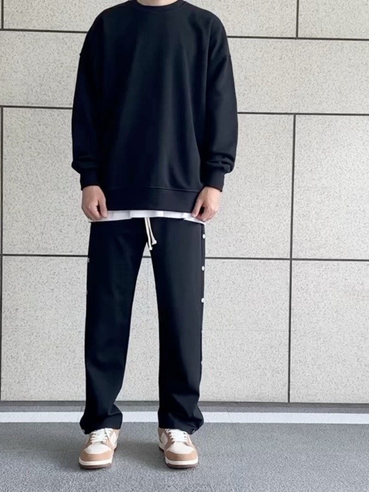简洁的直筒版型,配合纯净的黑色,传达出简约的潮流态度。上身搭配一件灰色印花卫衣,胸前黑白的印花传达出低调的气质,释放青春活力气息。外搭一件黄色中长款大衣,翻驳领的设计将气质衬托的更加出众。脚上一双黑色休闲皮鞋,整体造型简约而不失大气感,沉稳而不失活力的气息,轻松打造街头潮男形象。