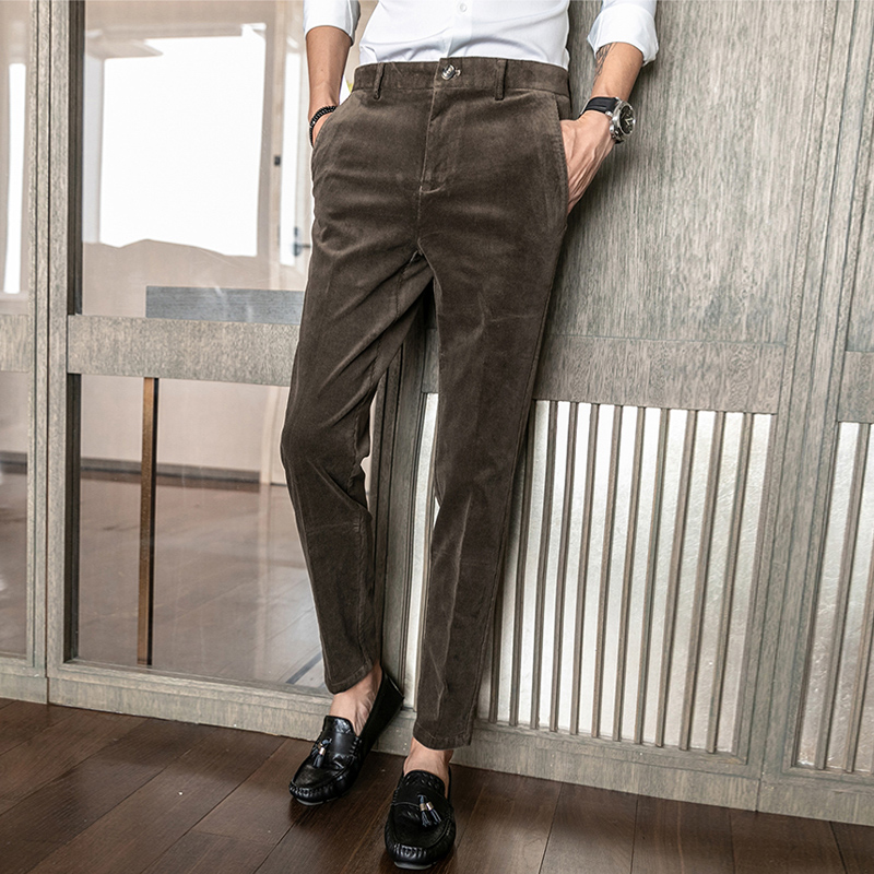 休闲裤,让你穿出大长腿。修身版型,凸显身材曲线。灯芯绒面料,复古感十足。