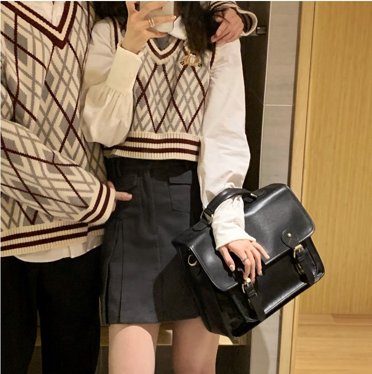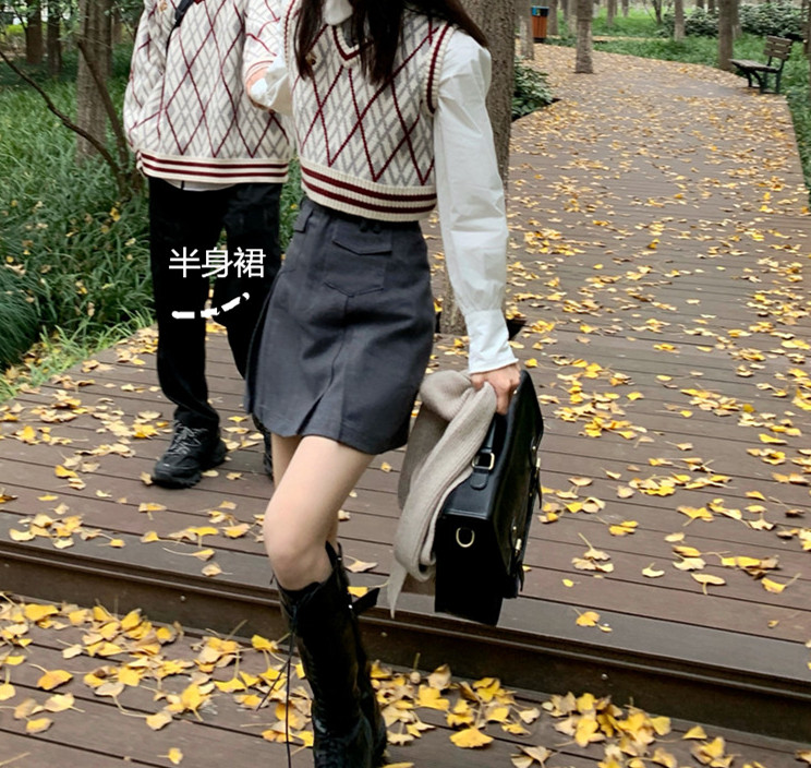 这款半身裙采用了毛呢面料,手感柔软,穿着舒适,高腰的设计,拉长腿部线条,显瘦效果很好,搭配一件白色的毛衣,很有学院风的感觉。