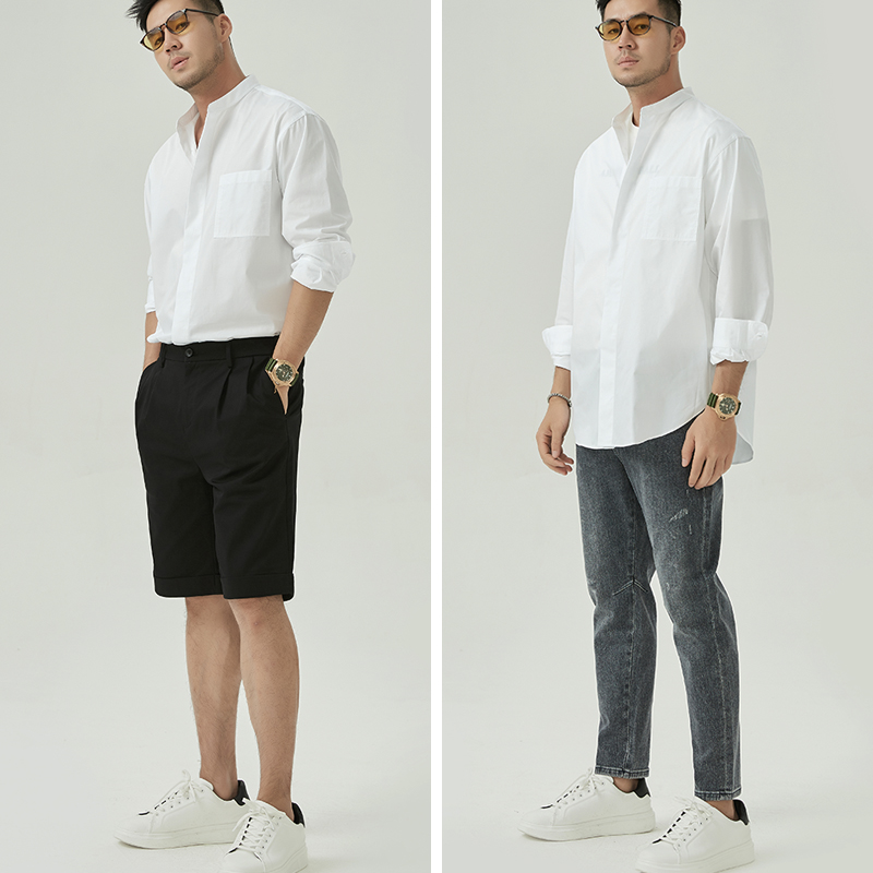 简约的高腰设计,搭配上修身的版型,上身显瘦又显高。