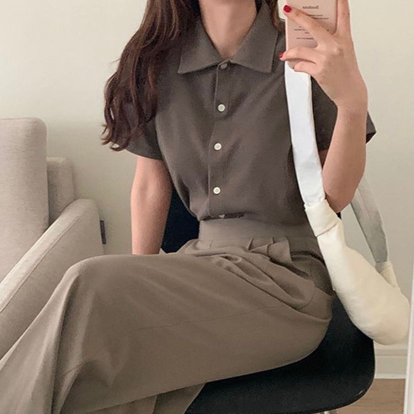 简约的高腰设计,搭配上修身的版型,上身显瘦又显高。