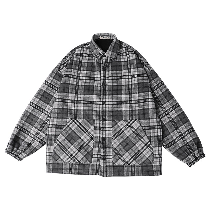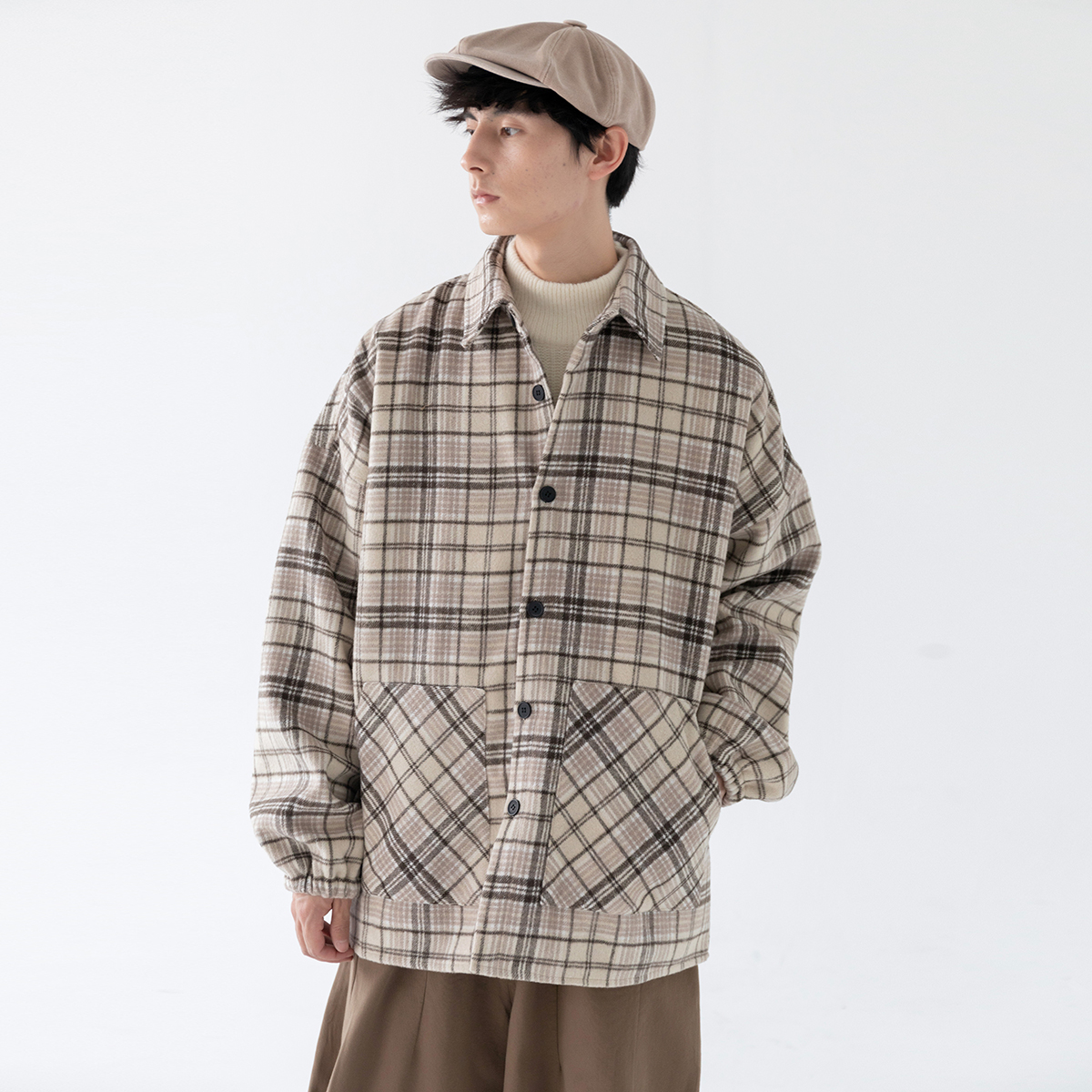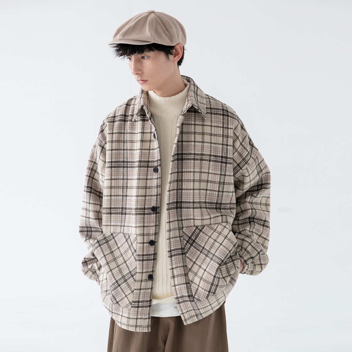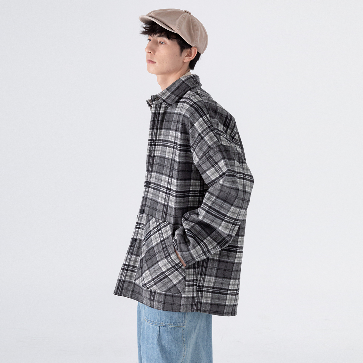 宽松版型,日系复古风格,经典格子元素,复古时尚,经典复古风格,时尚百搭,宽松大衣,让你轻松驾驭。