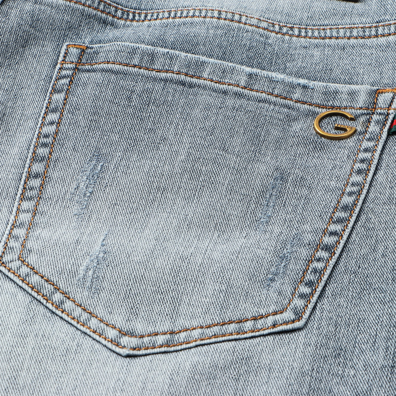 牛仔裤采用优质的牛仔面料,舒适透气,修身的版型设计,上身效果非常好,时尚百搭。