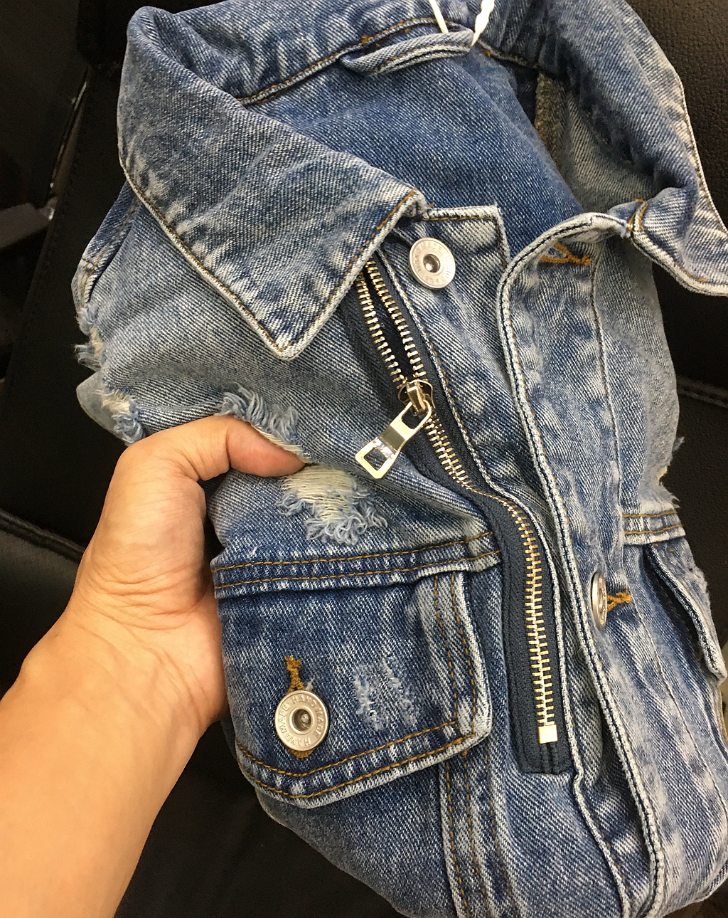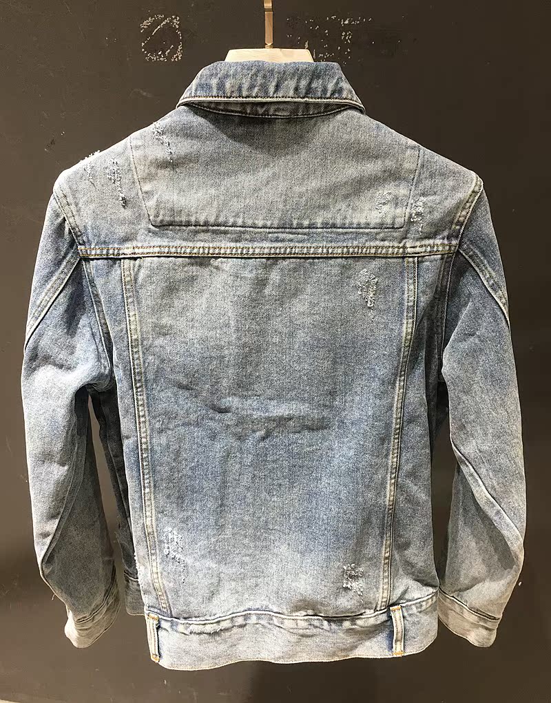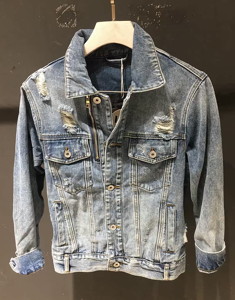 宽松版型,穿着舒适自在,水洗做旧工艺,复古怀旧,短款外套,拉长身材比例,简约的款式,时尚又百搭。