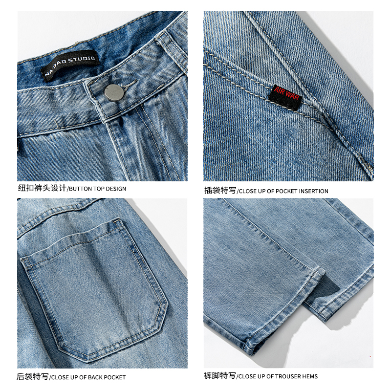 直筒裤型,修饰腿部线条,牛仔裤,穿着舒适不紧绷,宽松直筒版型,修身显瘦,休闲款式,让你轻松驾驭,蓝色的色调,时尚又百搭。