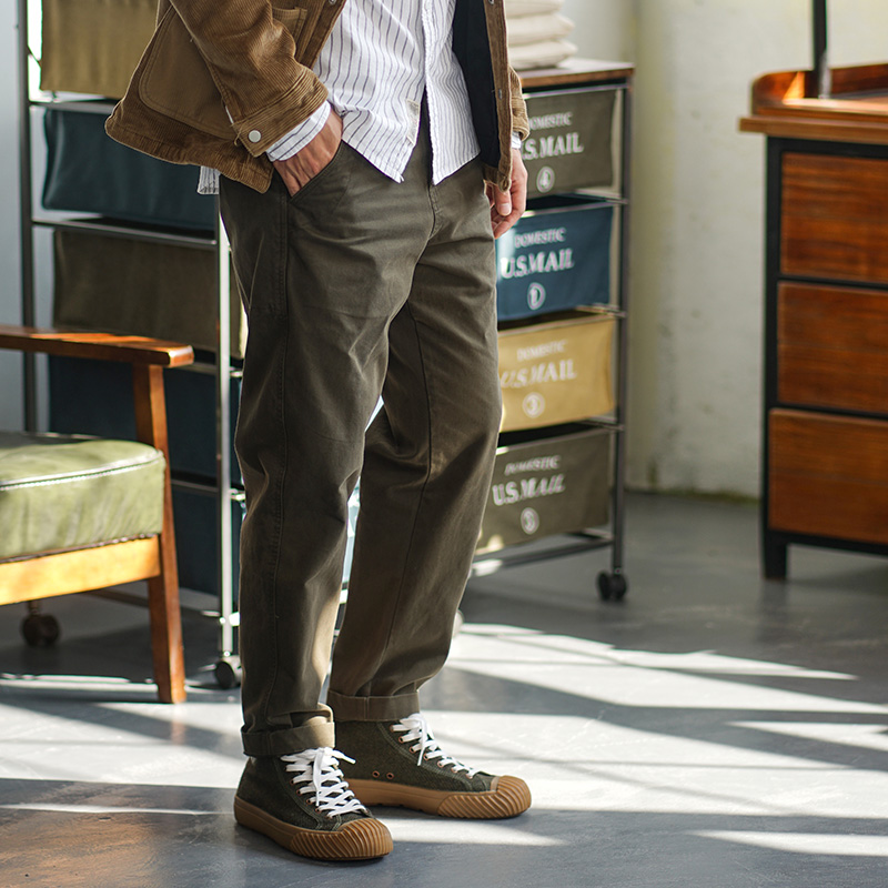 复古的工装裤,宽松的版型,穿着舒适自在,多口袋的设计,丰富了层次感,上身很有范,搭配一件T恤,就能轻松穿出潮男范。