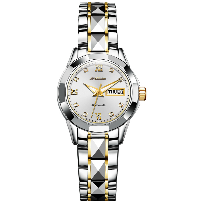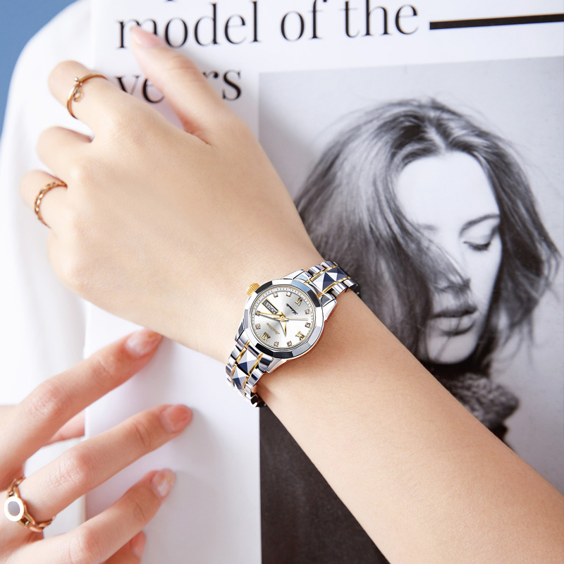 精致的表盘设计,时尚美观,彰显高贵的气质,表盘上的水钻点缀,增添了几分甜美的气息,让你的手腕更加的纤细。