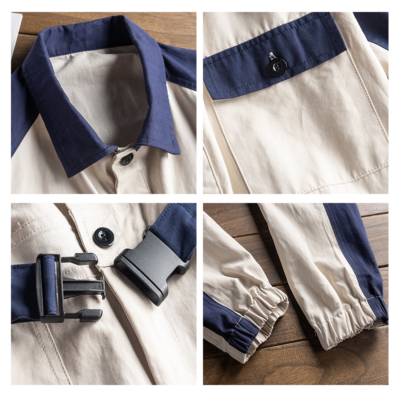 经典的翻领设计,简约大方,彰显男士的干练气质,时尚的撞色拼接设计。