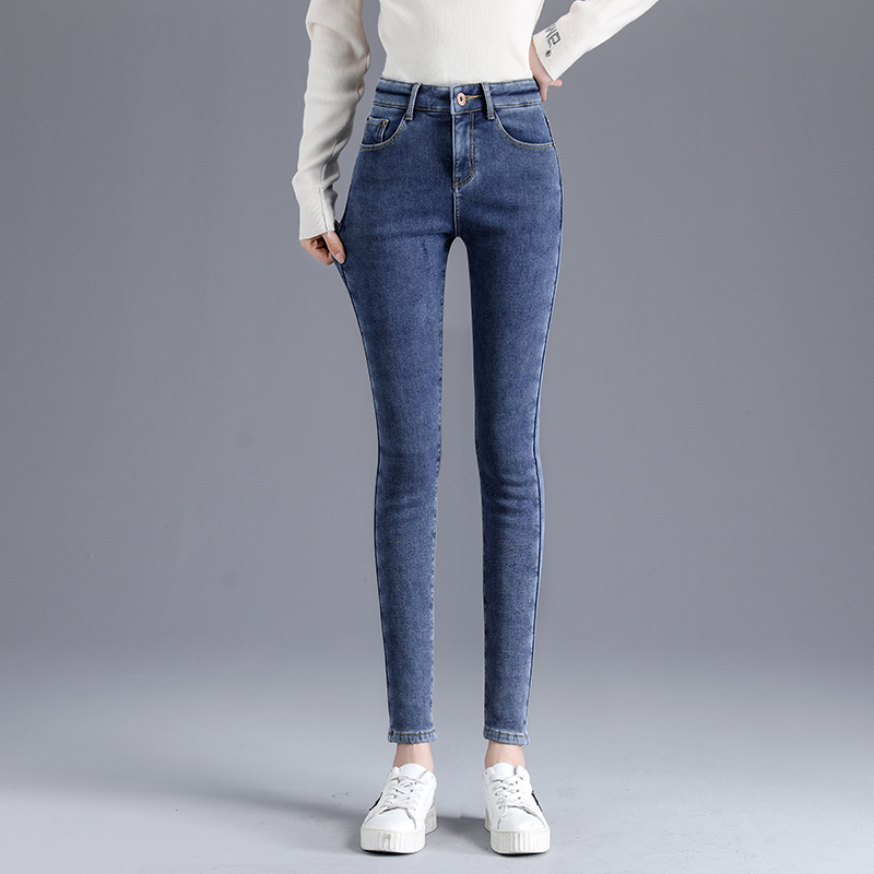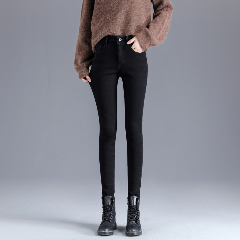 经典的高腰设计,很好的拉长腿部线条,显瘦效果很明显,修身的版型,更显高挑,加绒的面料,保暖又舒适。