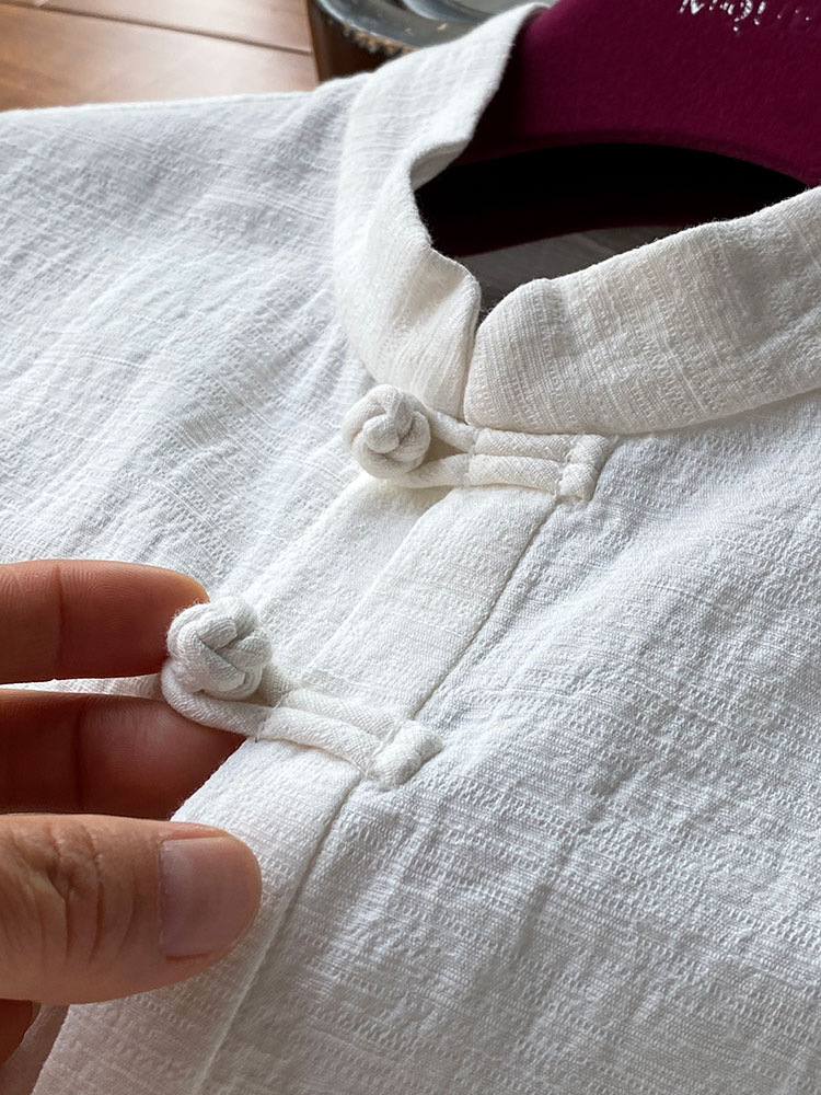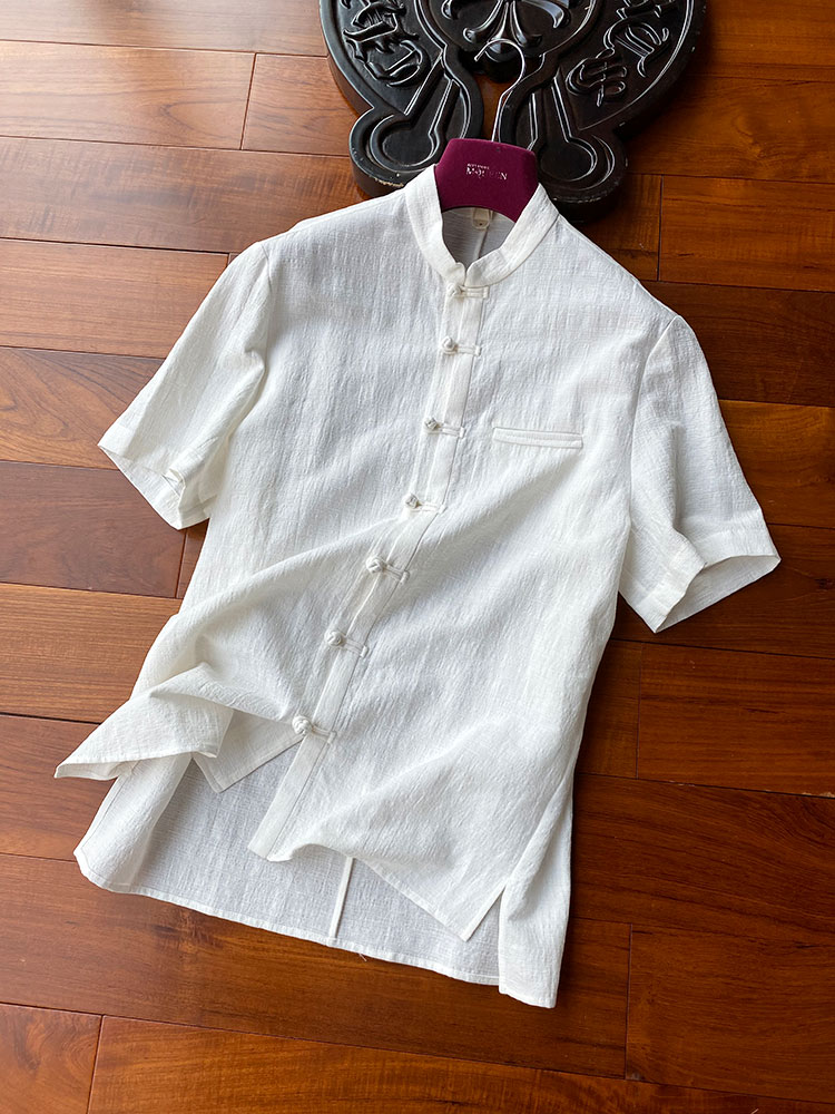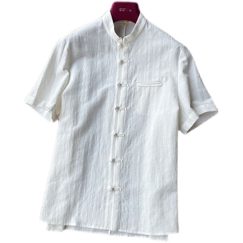 衬衫采用了亚麻面料,手感柔软,穿着舒适,透气性好,不起球。