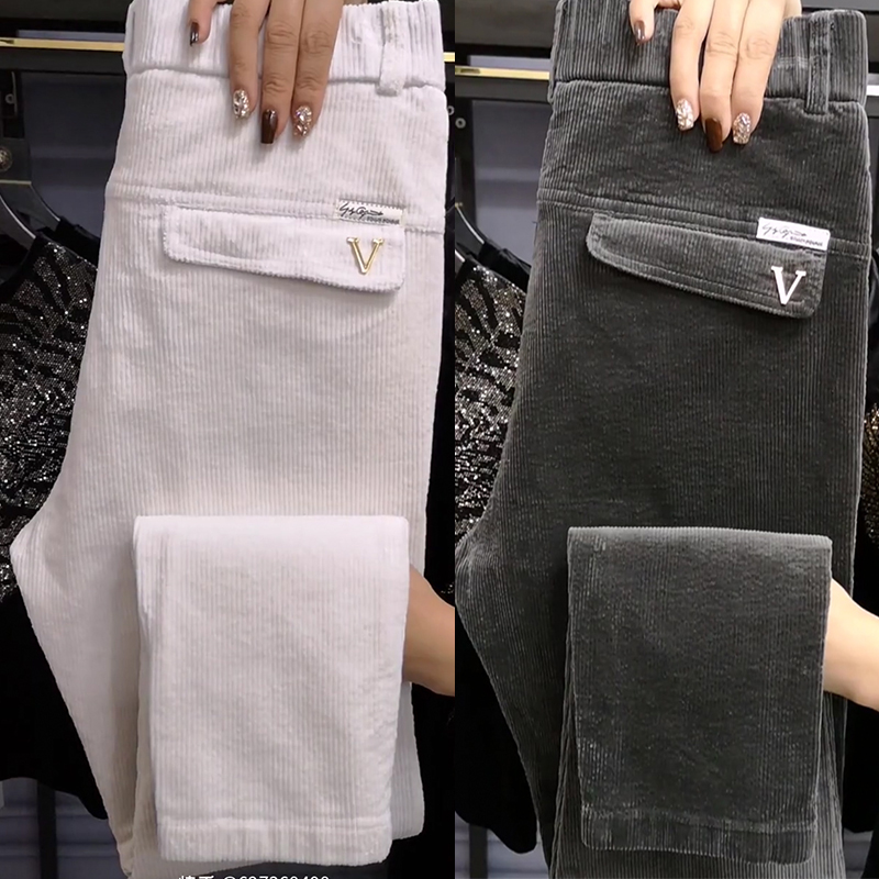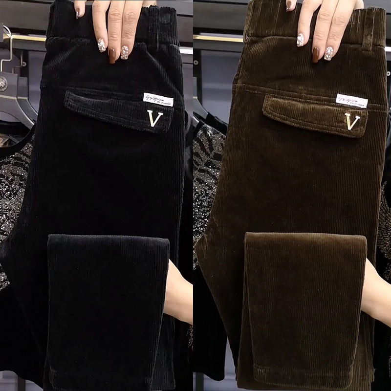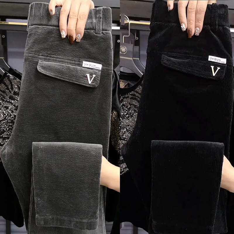 束脚设计,修饰腿部线条。条绒面料,穿着舒适透气。修身版型,凸显身材曲线。