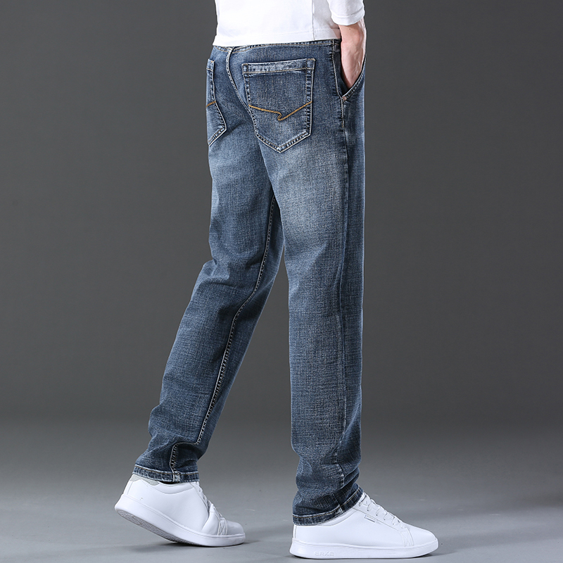 这款牛仔裤选用了优质的棉弹牛仔布面料制作而成,具有良好的吸湿性与透气性,舒适不闷热。