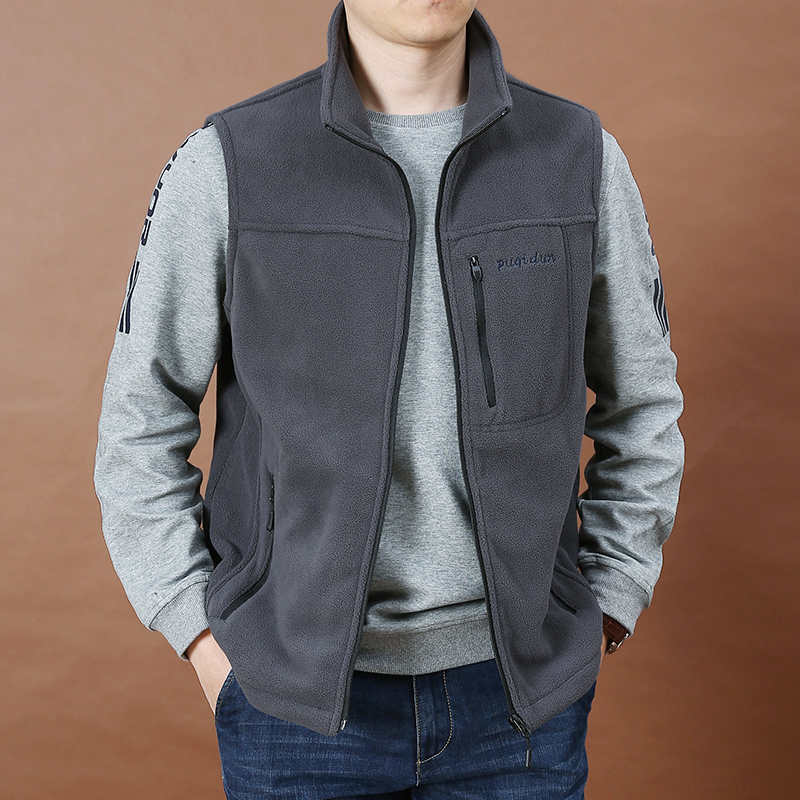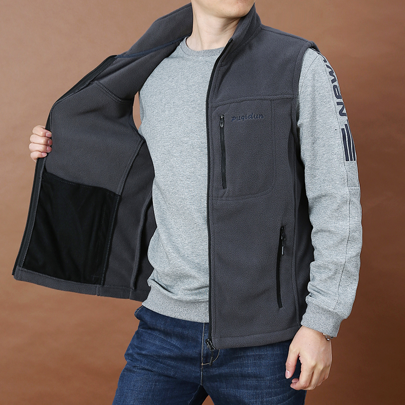 立领设计,凸显男士魅力,马甲款式,穿着无束缚感,简约的款式,时尚又百搭,抓绒材质,穿着舒适保暖,短款外套,拉长身材比例,休闲版型,让你轻松驾驭。