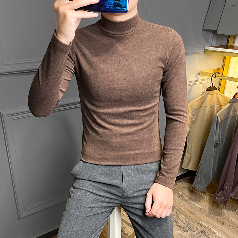 修身的版型剪裁,穿着舒适不紧绷。高领设计,防风保暖。纯色的色调,简约又百搭。