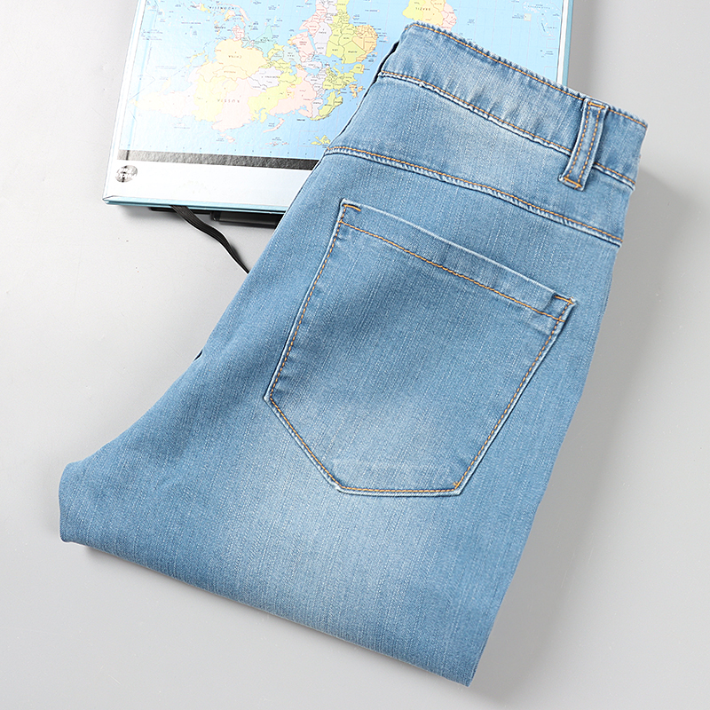 高腰设计,拉长身材比例。高腰牛仔裤,显瘦显腿长。直筒裤型,修饰腿部线条。