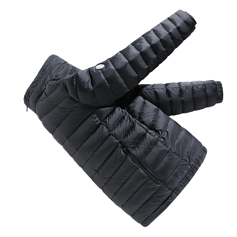 采用了优质的羽绒面料,穿着舒适保暖,连帽的设计,更显时尚潮流。