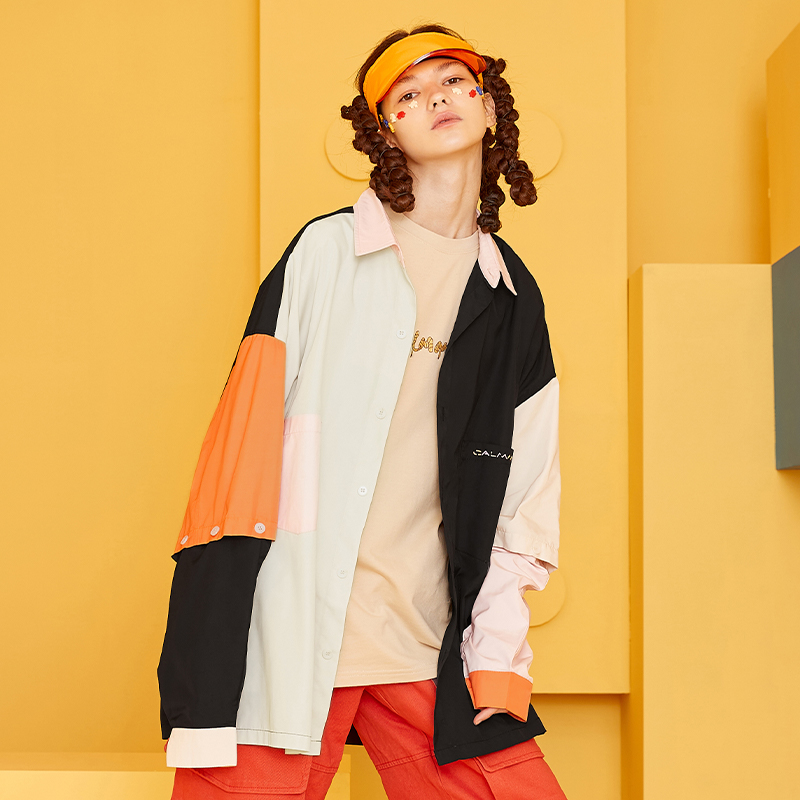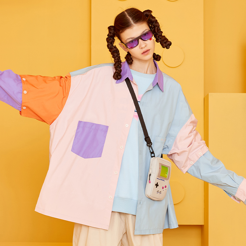 撞色的拼接设计,让这款衬衫充满了时尚的气息,宽松的版型,穿着舒适自在,休闲的款式,很好的修饰手臂线条,搭配一条牛仔裤,尽显青春活力。