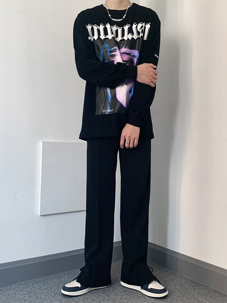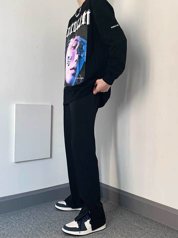 黑色的裤身自带显瘦的特征,而且搭配起来也会更加的容易,裤脚的小开叉设计,很随性大方,凸显设计感。