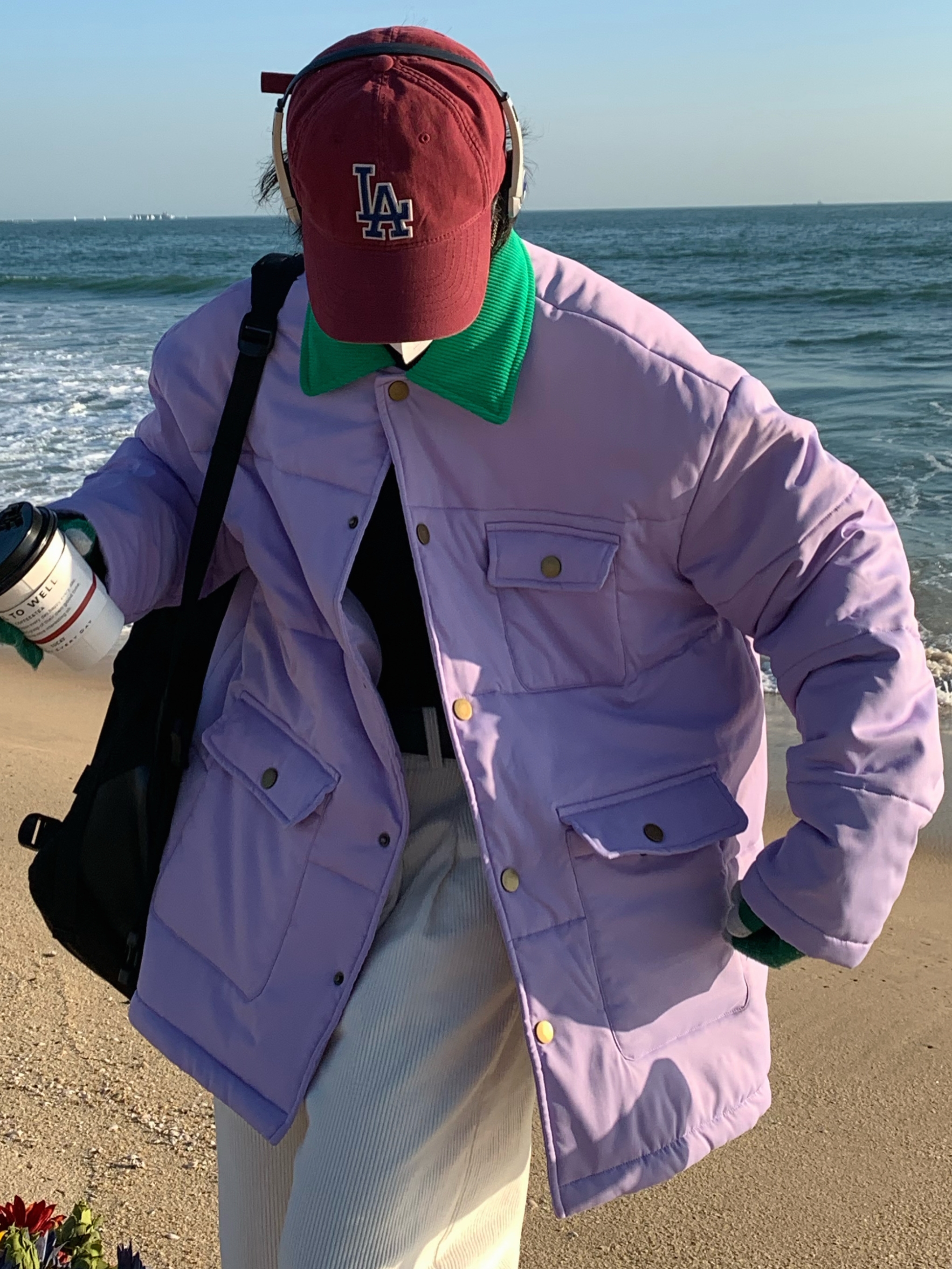寒冷冬季,相信你需要这样一件既时髦又保暖的棉衣,衣身运用紫色调渲染,时尚新颖,彰显出优雅的气质。