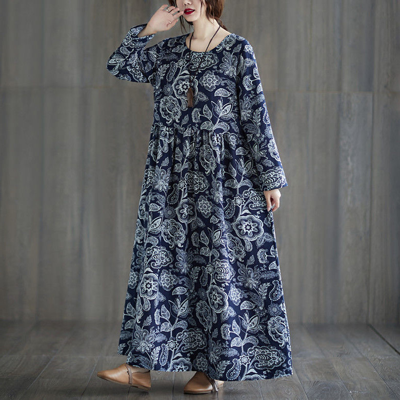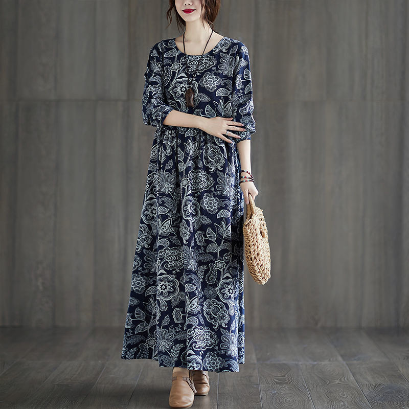 中长款连衣裙,修身显瘦,民族风印花,复古又时尚,宽松版型,穿着舒适自在,简约款式,适合各种场合。