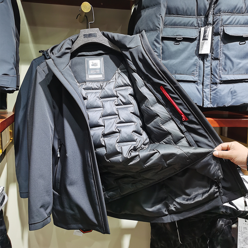 中长款羽绒服,保暖舒适,经典风衣版型,时尚百搭,连帽设计,彰显男士魅力。