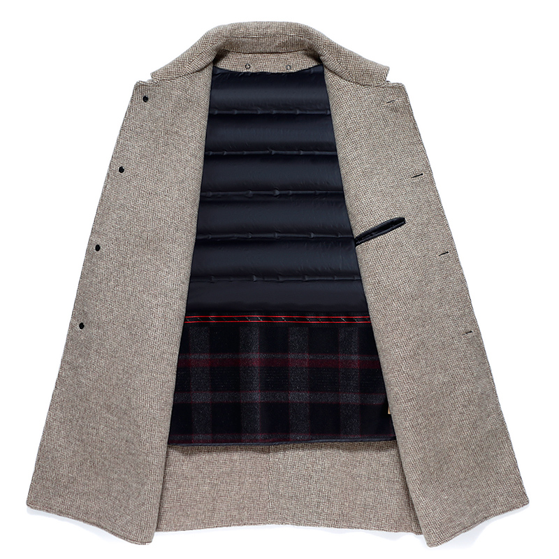 中长款版型,保暖效果好,大衣版型设计,修身显瘦,毛呢面料,穿着舒适保暖,中长款羽绒服,保暖舒适。