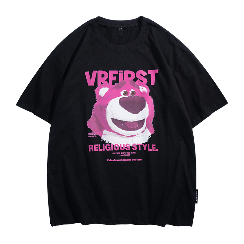 T恤采用了经典的圆领设计,简约大方,胸前的卡通印花图案,充满了童趣,宽松的版型,穿着舒适自在,搭配牛仔裤或者短裤都很好看。