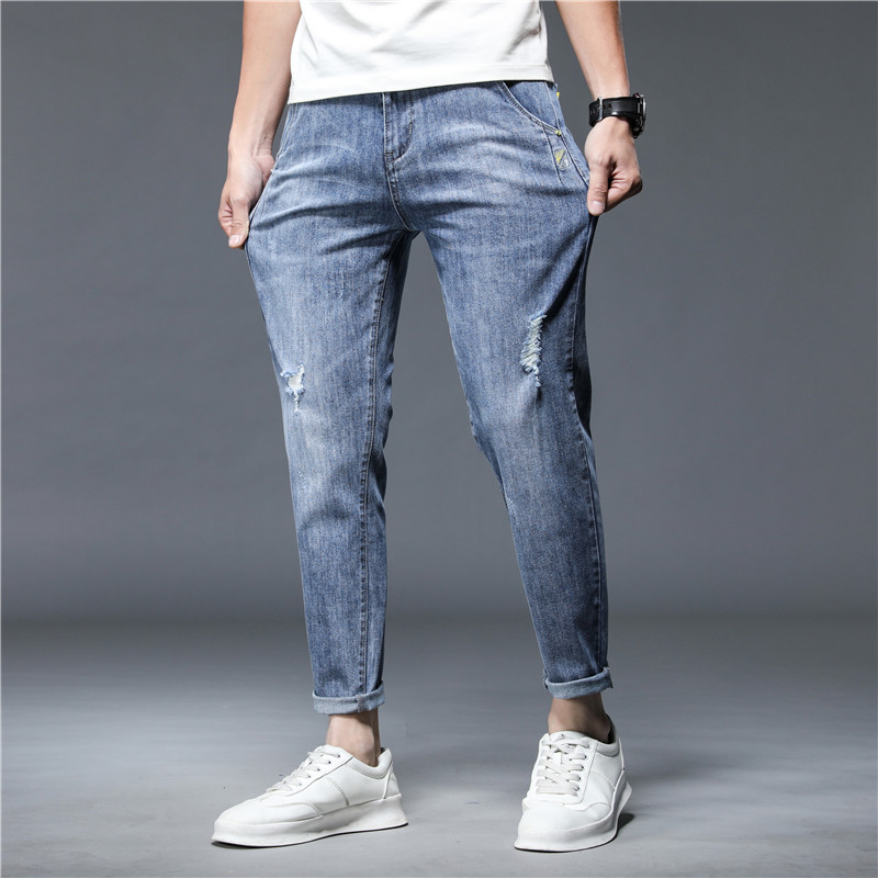 破洞牛仔裤,破洞设计,让这款牛仔裤看起来更加的时尚,而且破洞的设计也是很不错的,很有个性。